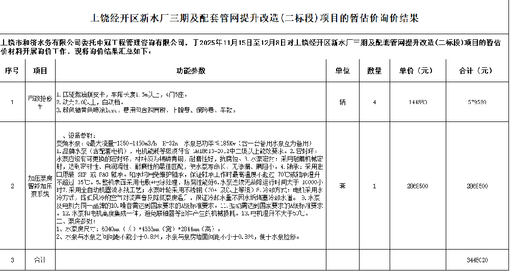 上饒國(guó)屬工程造價(jià)咨詢有限公司受上饒市和濟(jì)水務(wù)有限公司的委托,根據(jù)上饒市和濟(jì)水務(wù)有限公司的招標(biāo)計(jì)劃,遵循公平、公正、公開(kāi)、誠(chéng)信原則,對(duì)上饒市和濟(jì)水務(wù)有限公司的哈夫節(jié)采購(gòu)項(xiàng)目進(jìn)行公開(kāi)詢價(jià),誠(chéng)邀相關(guān)供應(yīng)商對(duì)采購(gòu)單位所需服務(wù)進(jìn)行報(bào)價(jià)。一、招標(biāo)需求1.項(xiàng)目名稱:哈夫節(jié)采購(gòu)項(xiàng)目2.項(xiàng)目要求:詳見(jiàn)附件二、報(bào)價(jià)要求1、供... [更多]