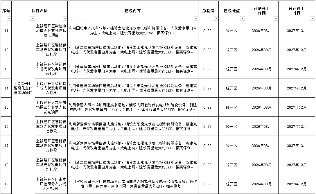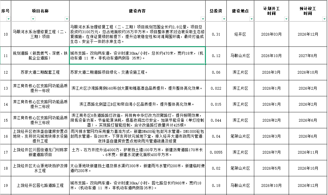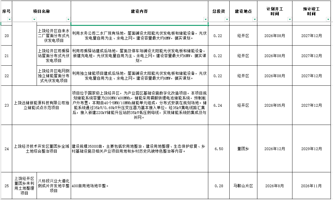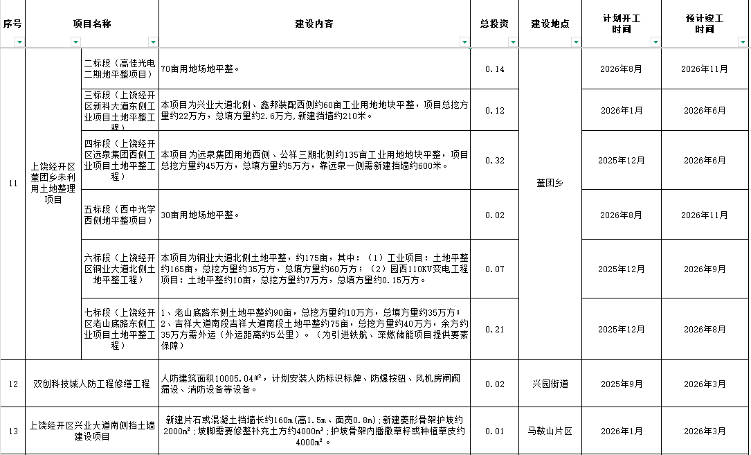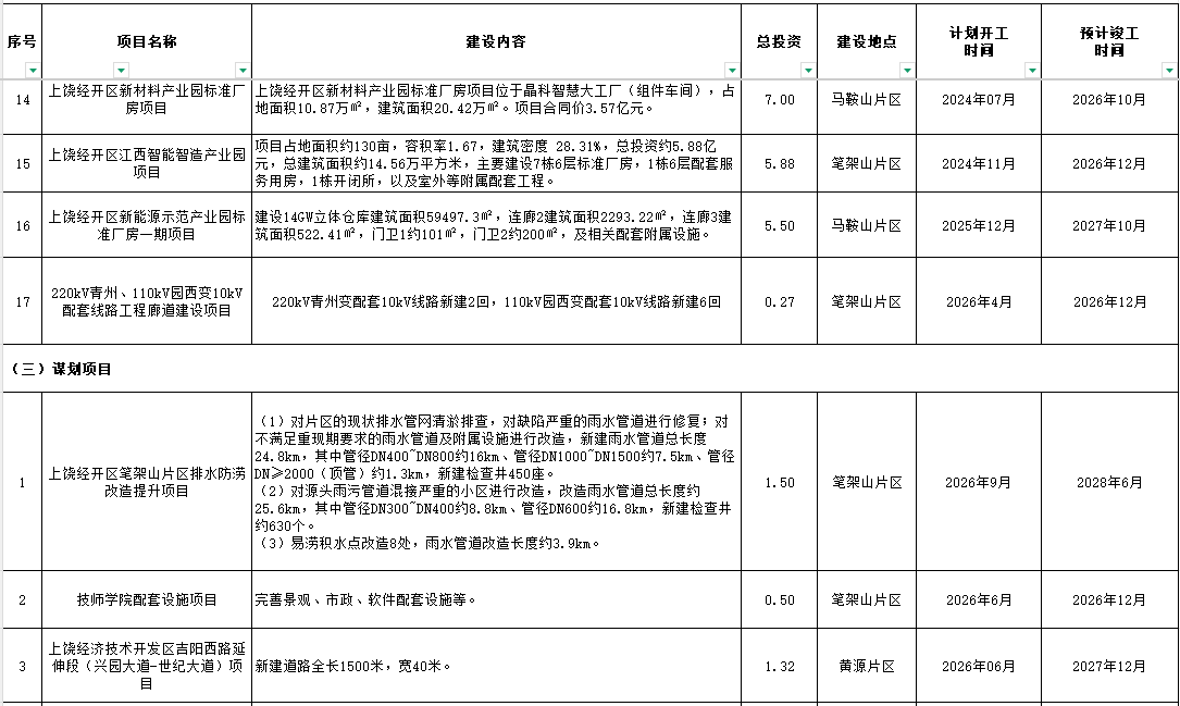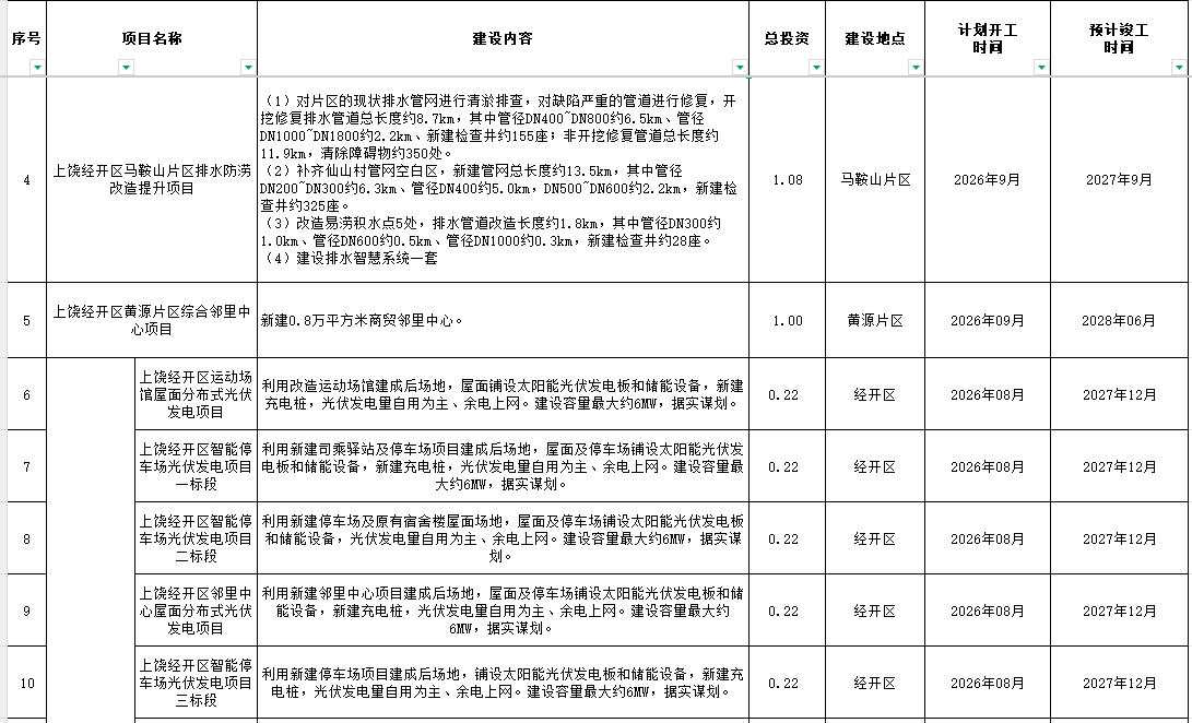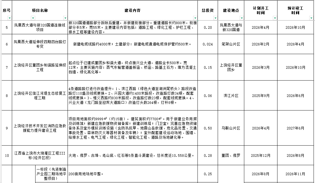 2026年上饒經開政府性項目投資計劃表
